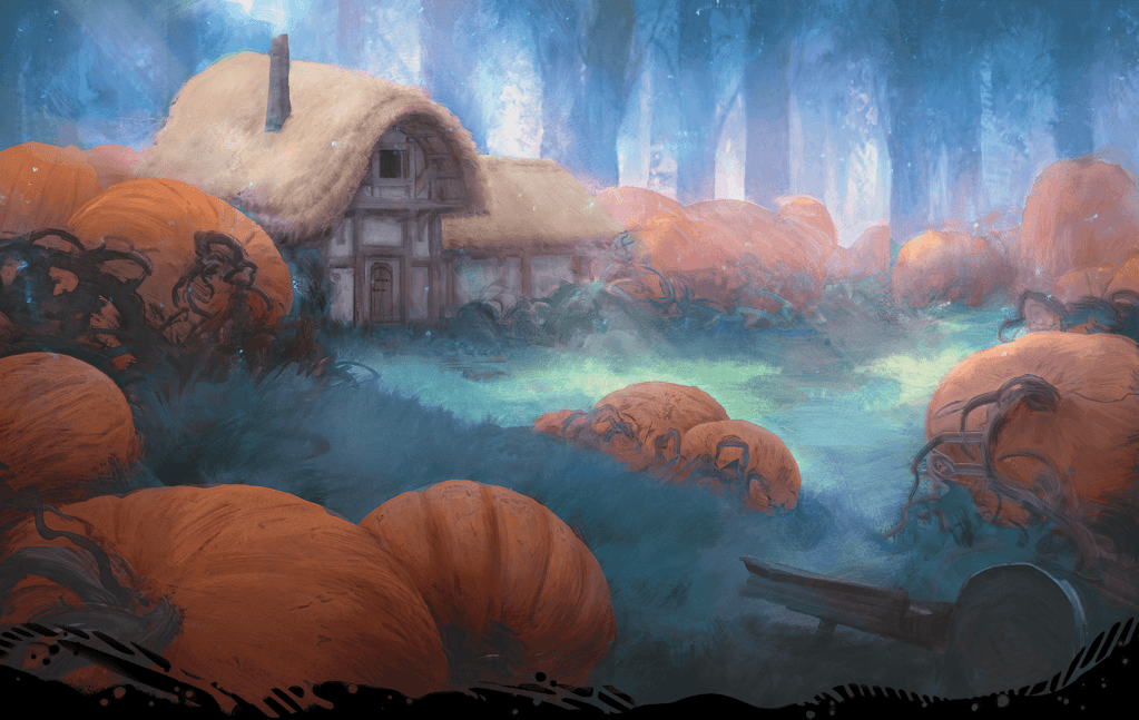 On the outskirts of town is a large farmstead complete with an attached barn, and iron weathervane. While the traditional neat rows of vegetables, fruits, and flowers cover the grounds, most interestingly are the giant pumpkins outside of the barn – some towering over the building itself. A number of cats roam the grounds, one is even stretched lazily on the barn roof, all seemingly ignorant or uncaring to your presence.