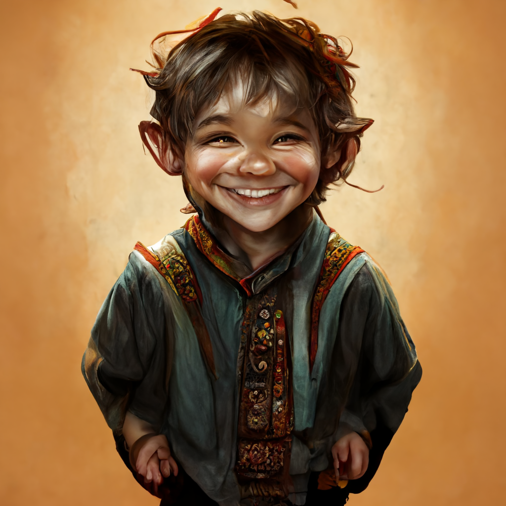 Otto https://drive.google.com/file/d/1wlAY47tqFpXNezM5WsZldOo8Mxu1SV1R/view?usp=drive_link I think he might have at least one halfling parent, but I was adored by the picture right away