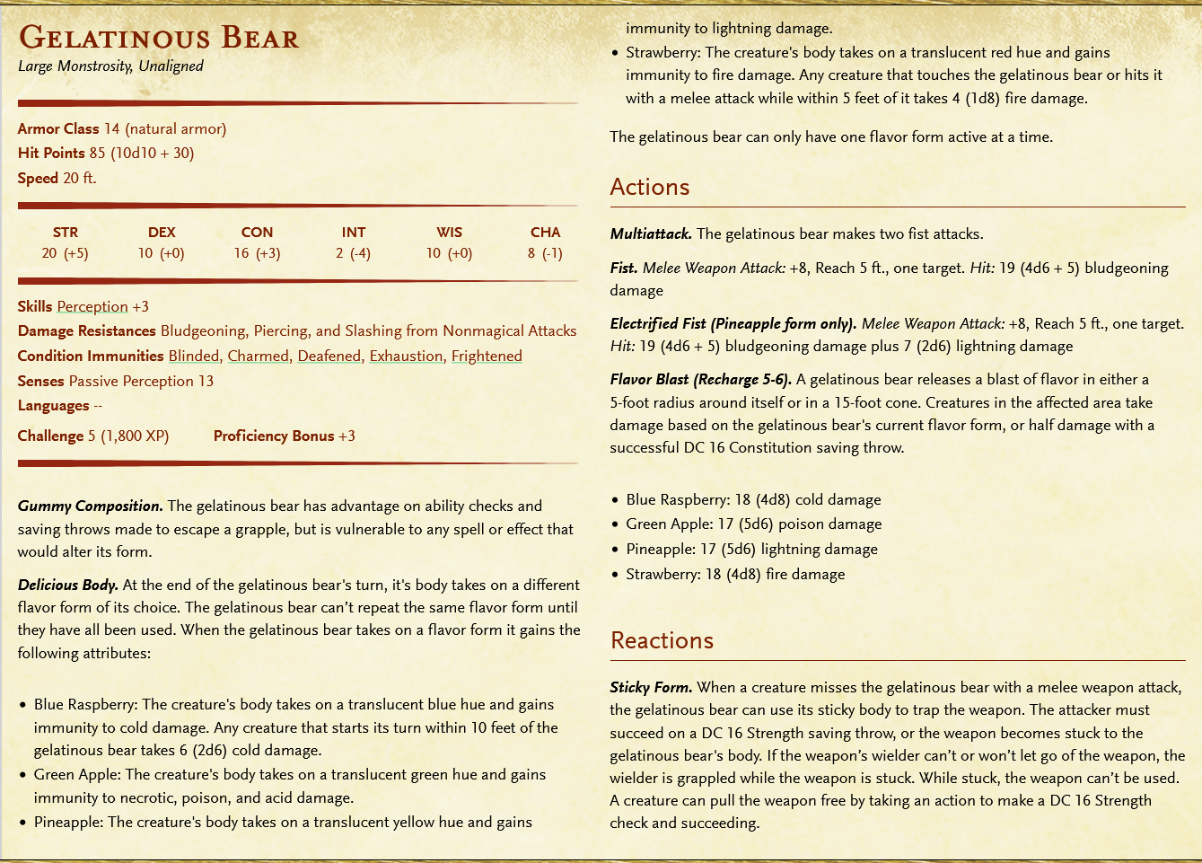 A search of the room will turn up the dead body of a goblin, clearly torn apart by the gelatinous bear, as well as a set of alchemist’s supplies, a vial of toxin, and a vial of antitoxin. On the body, the players will find a piece of parchment laying out experiment notes that are too bloodied to read, but clearly related to the gelatinous bear, as well as a potion of greater healing.