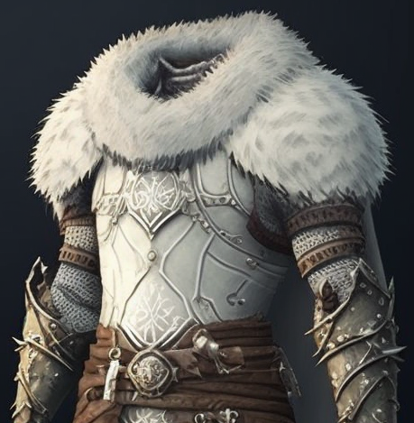 This armor is comprised of white leather and thick white hair reminiscent of the winter wolves it was crafted after. While wearing this armor, you gain a +1 bonus to AC and you ignore difficult terrain created by ice or snow.