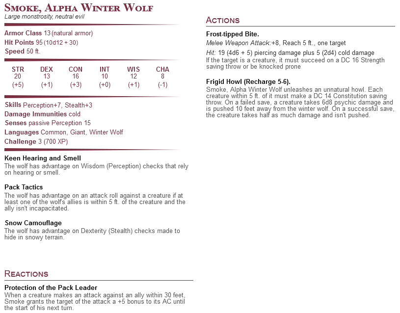 • These are 3 winter wolves (Basic Rules) and Smoke, Alpha Winter Wolf (see below)