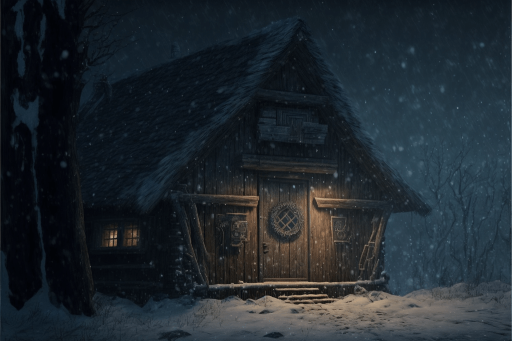 Unless a character makes a successful DC 16 Stealth check when they enter, Erik Coldhollow, a winter eladrin (Monsters of the Multiverse) with 80 hit points remaining will have his longbow drawn in the direction of the character as they step inside. Erik is paranoid that the beast that attacked him and his wife, or members of the Winter Court, will find and attack him (see Erik’s Journal for more detail).