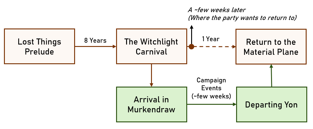 If you do choose to use these sections, as mentioned, this is a great opportunity for you to explore backstories / side plots with your party’s characters that may have been impossible to do in the Feywild due to needing specific locations, NPCs, etc. Think about how to best work those in if desired.