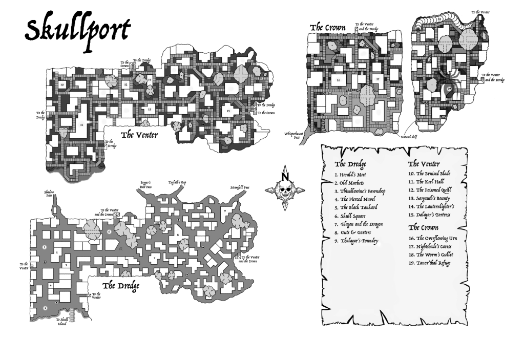 For the purposes of this campaign, the version of Skullport I used is not a strictly canon version of the city and in some cases homebrewed, consolidated, or merged areas as appropriate. In building out Skullport I heavily leveraged a number of sources including the following so wanted to share a deep thanks to these authors (and if you want to flesh out Skullport further I highly recommend checking these out):