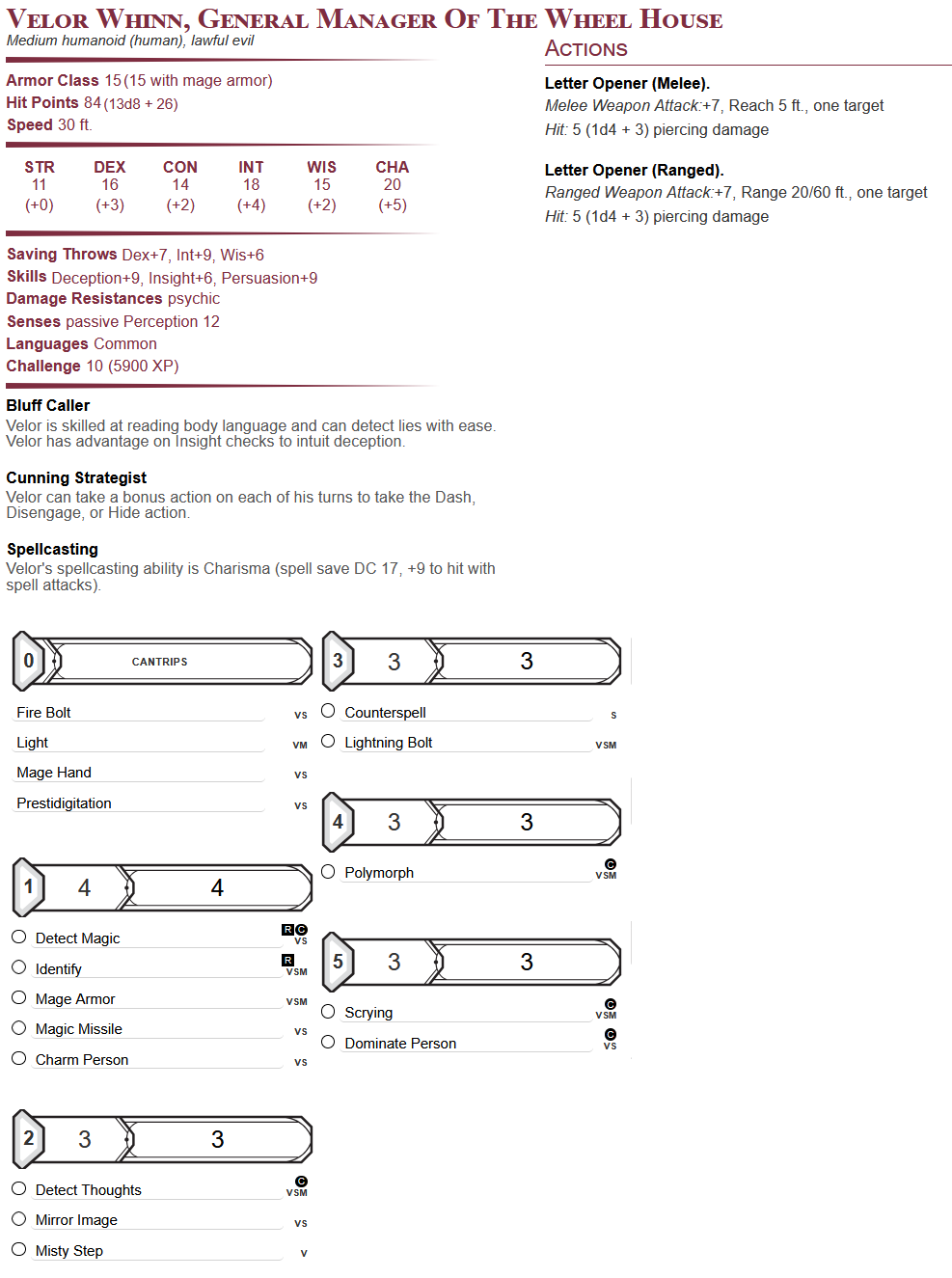2. Cyrus Blackveil (Neutral Evil Human): A cunning and calculating gambler, Cyrus wears a permanent smirk and never shows his true emotions