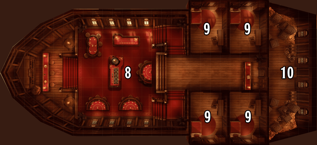 To represent the floor, I used The Gambler’s Ship variant map by Eightfold Paper (excluding the exterior background).